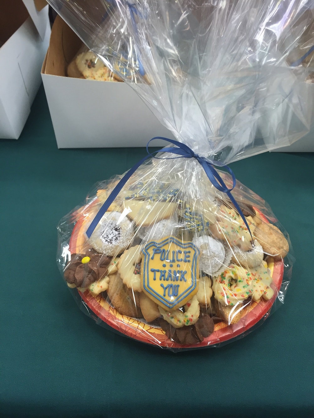 The message delivered with each two-pound cookie platter reads, “Cookies for cops with