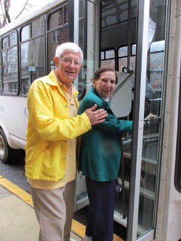 Residents board the bus for a lunch trip to Captain Cats seafood restaurant, one of the residents’ favorites. Bus driver, Gene DiLeo always makes sure residents have a fun filled and safe ride. Lunch trips are always a well attended activity of Collingswood Manor residents and there is always one trip each month. Pictured here bus driver, Gene assists residents Peg McDonald and Jack Geigelman. Starting April 14, 2015 through July 14, 2015.