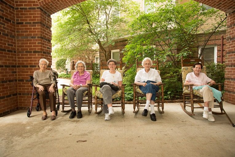 Residents enjoying the fresh air on the grounds of Collingswood Manor