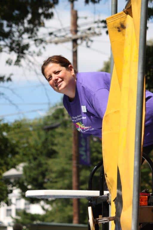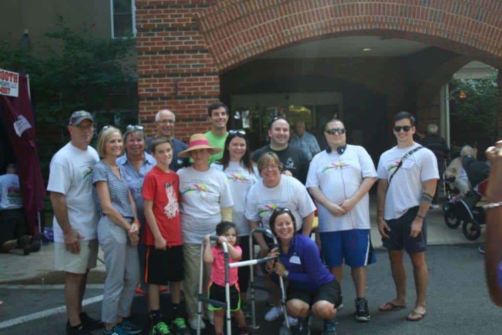 Collingswood Manor Executive Director, Shari Neidich, gets ready to assume her perch in the dunk tank for Family Fun Day & the Nardi family prepares for the inter generational walk that was held as part of the event.
