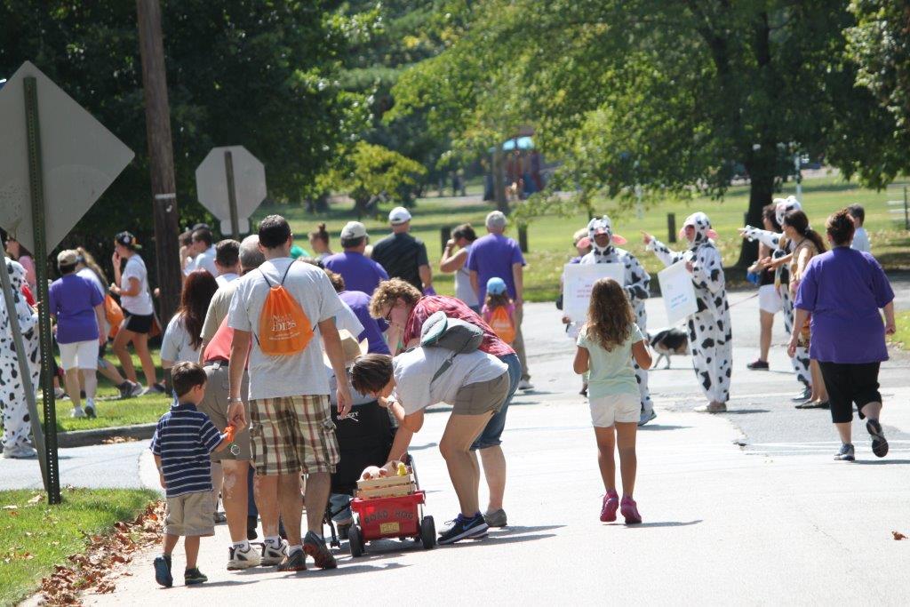 The inter generational walk got underway with “cow directors.” Also pictured, the Basket Auction which was a huge success with numerous basket and gift donations from local businesses & restaurants, resident families, and associates.