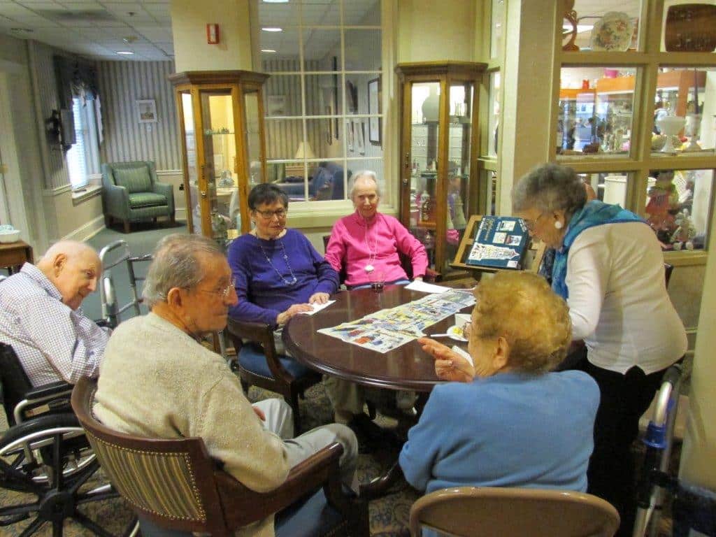 A weekly Happy Hour at Collingswood Manor is a time for folks to sit and enjoy some appetizers while chatting around a table. Sharing life stories and forming friendships make for an enjoyable time.