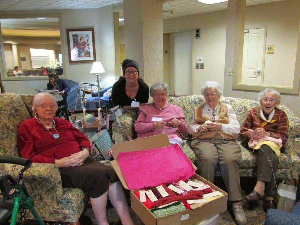 Throughout the past year the Collingswood Manor Knitting Club has been busy knitting red scarves. The scarves were recently packaged and sent to the Foster Care to Success, Red Scarf Project. On Valentine’s Day, the red scarves will be included in a care package to college students who have aged out of foster care and are continuing their education and moving forward to a brighter future. The knitting groups, led by volunteer Collette Maloney, have been diligently working on the scarves and look forward to their meetings on Wednesdays at 11AM in our living room. Thanks ladies for assisting with such an inspirational cause!